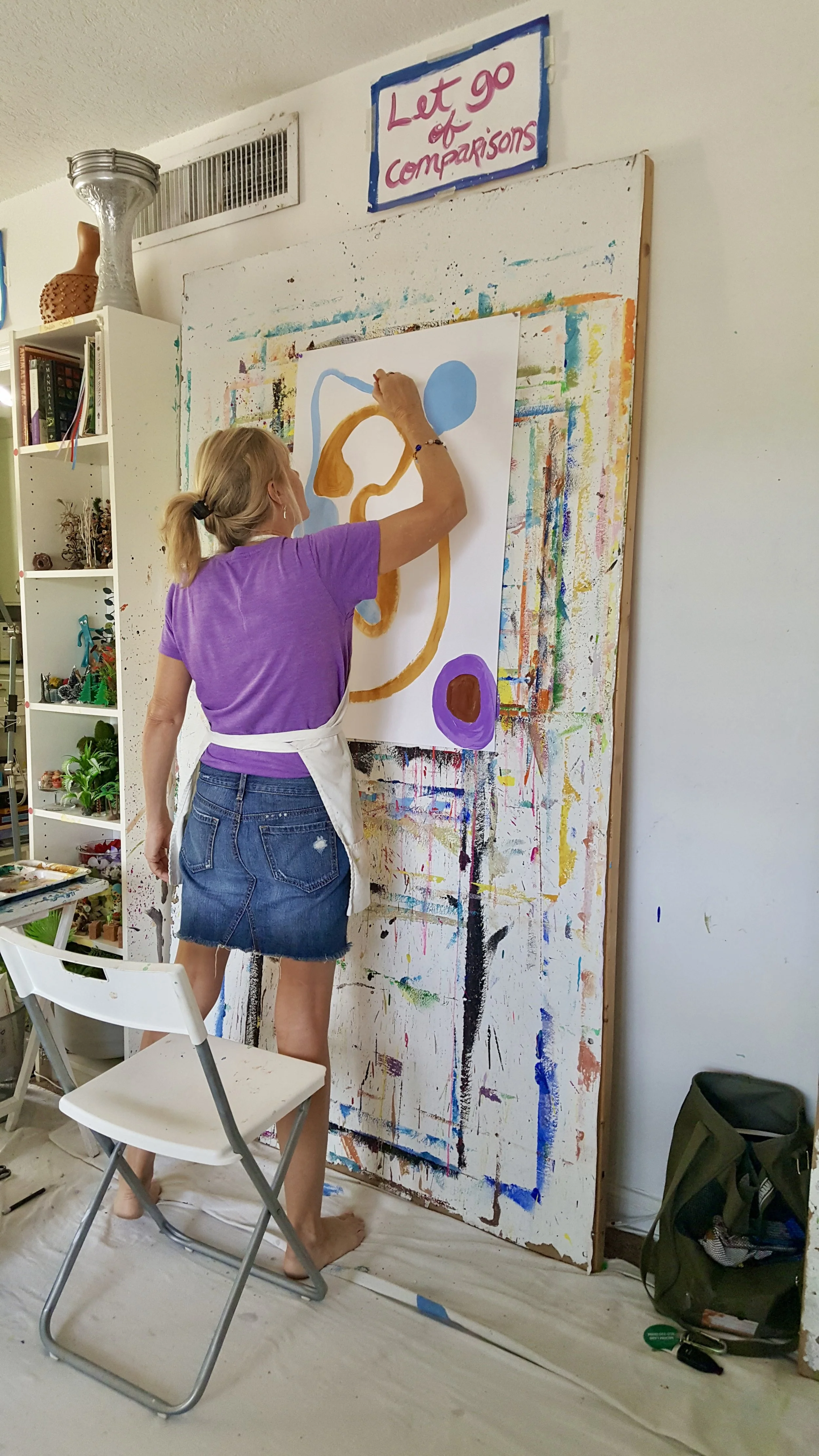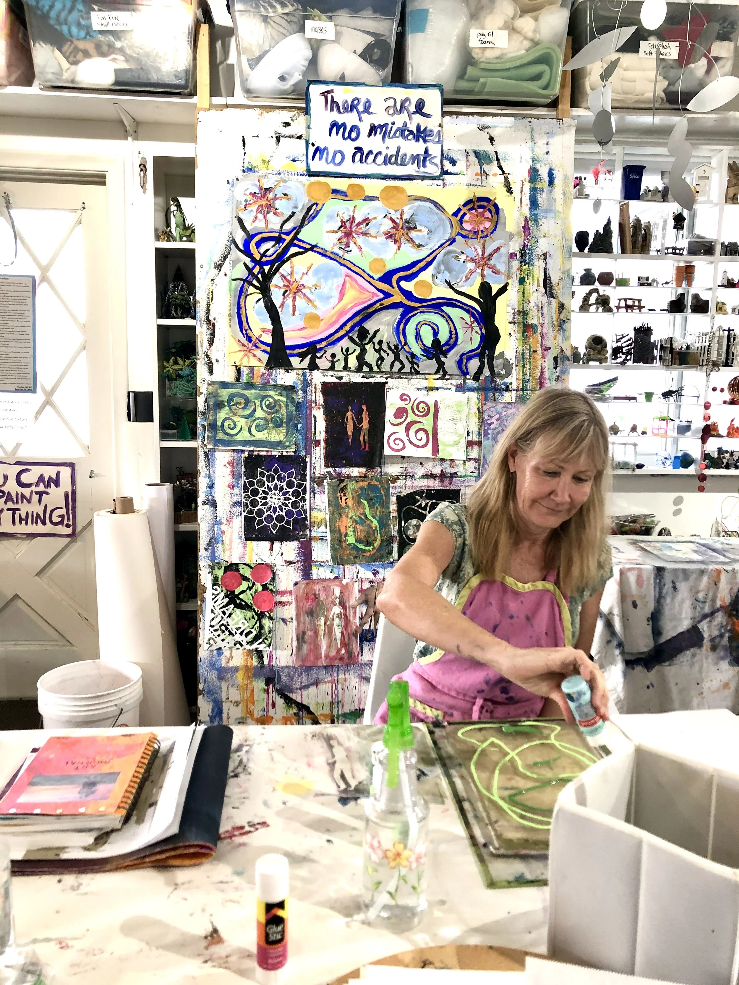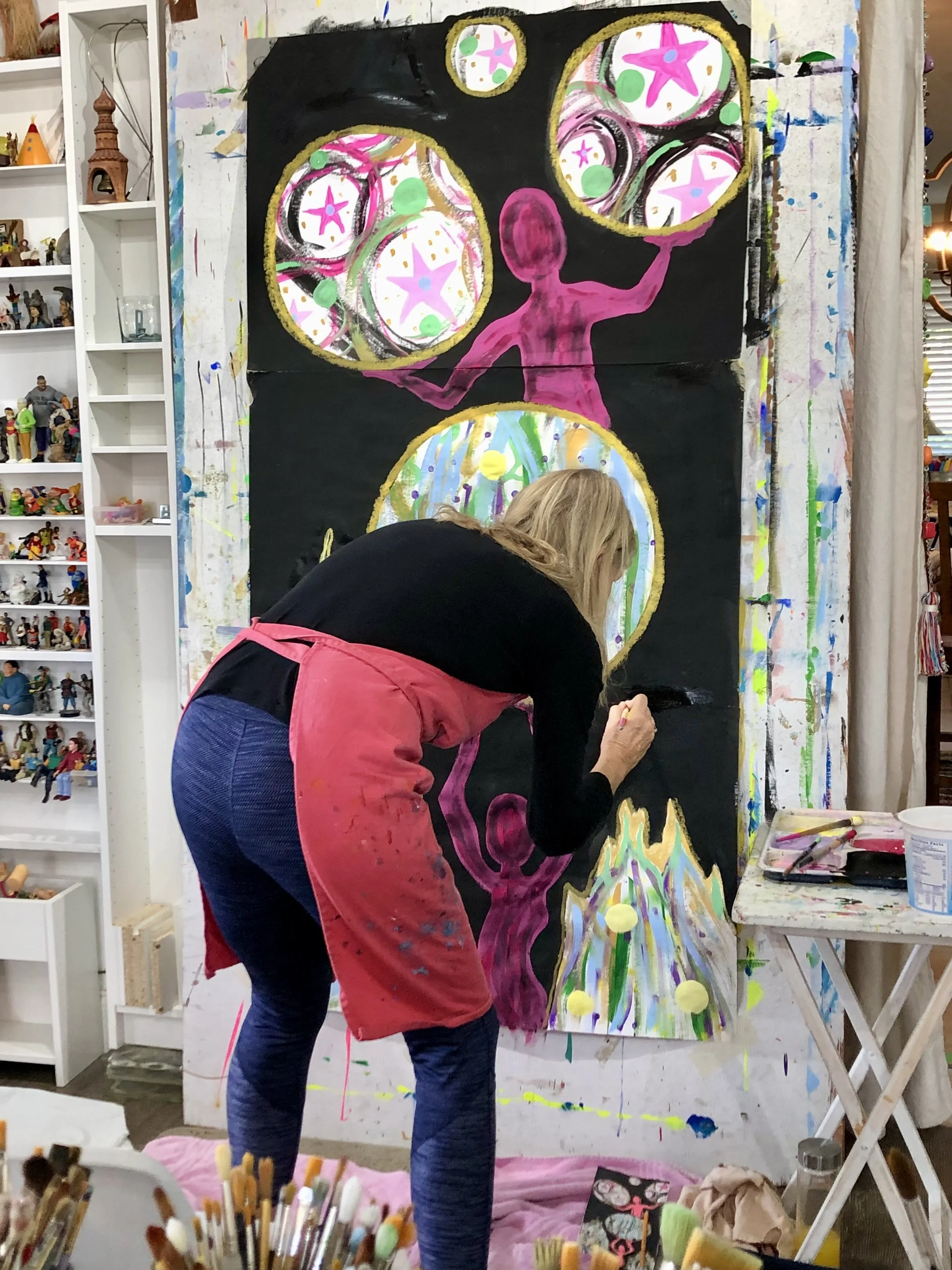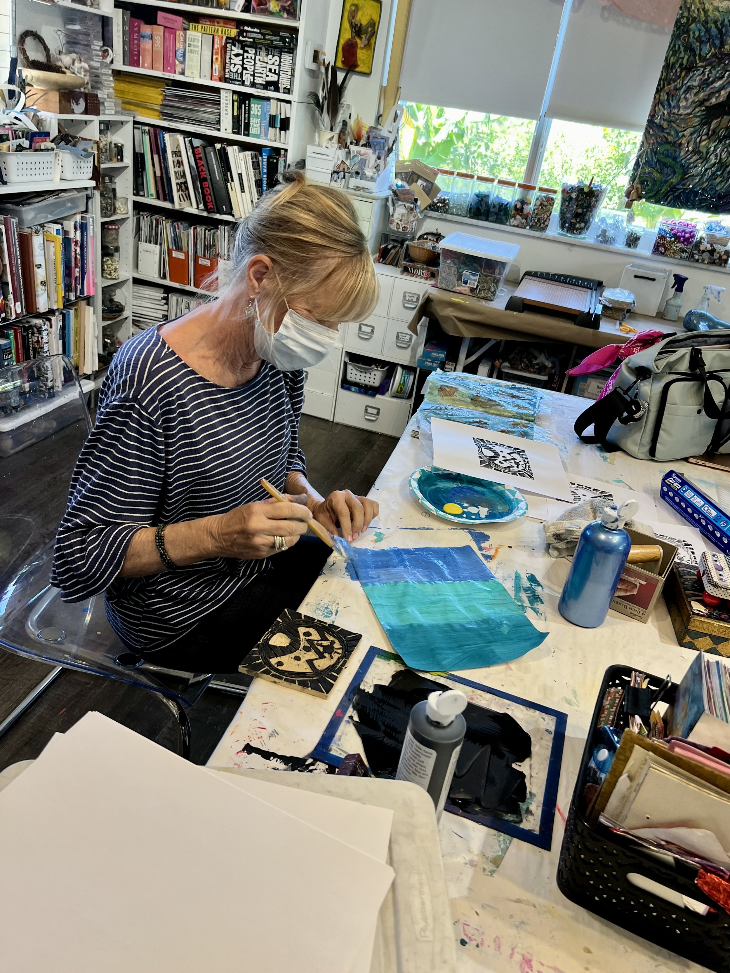 I have hundreds and hundreds of photos and videos of Ginny creating in the studio. I’ve shared just a few here to honor the extraordinary creative, joyful, and brave spirit that she was. Ginny inspired all of us—especially me—with her unwavering positivity, hilarious sense of humor, deep gentleness, playful FUN, and wild, soulful creativity. Through years of living with cancer—through remissions and reactivations—she showed up again and again with courage, curiosity, and heart.