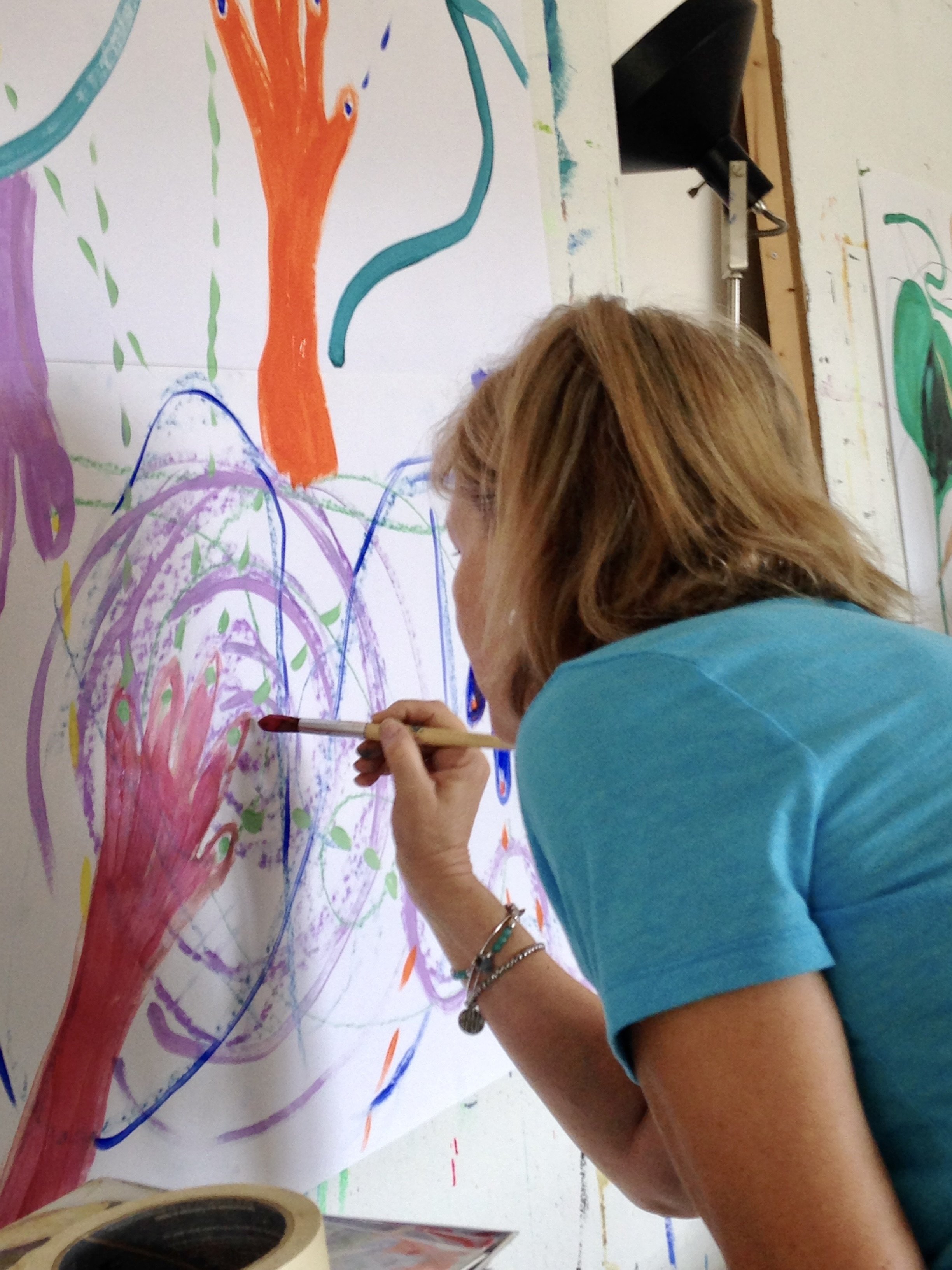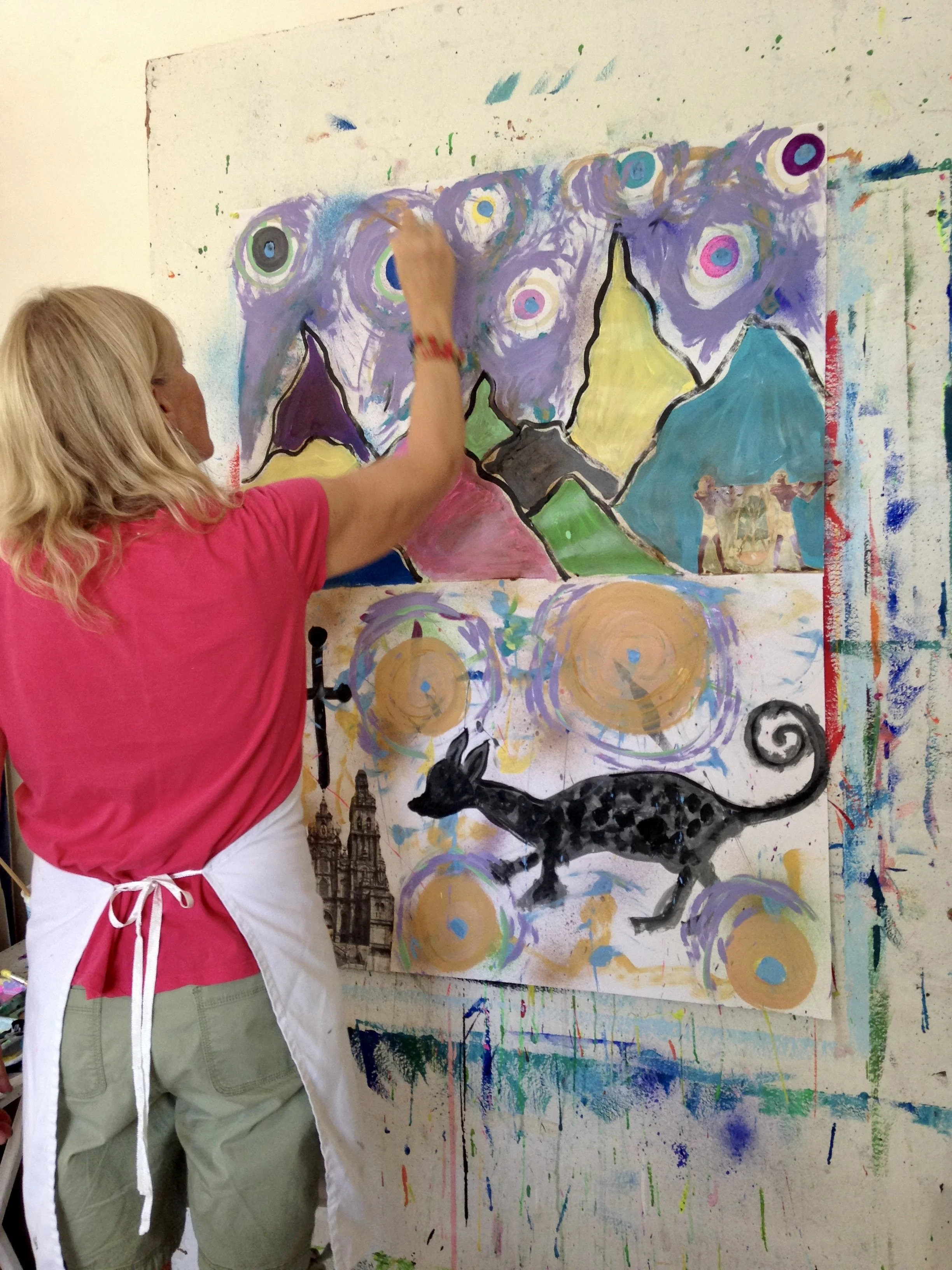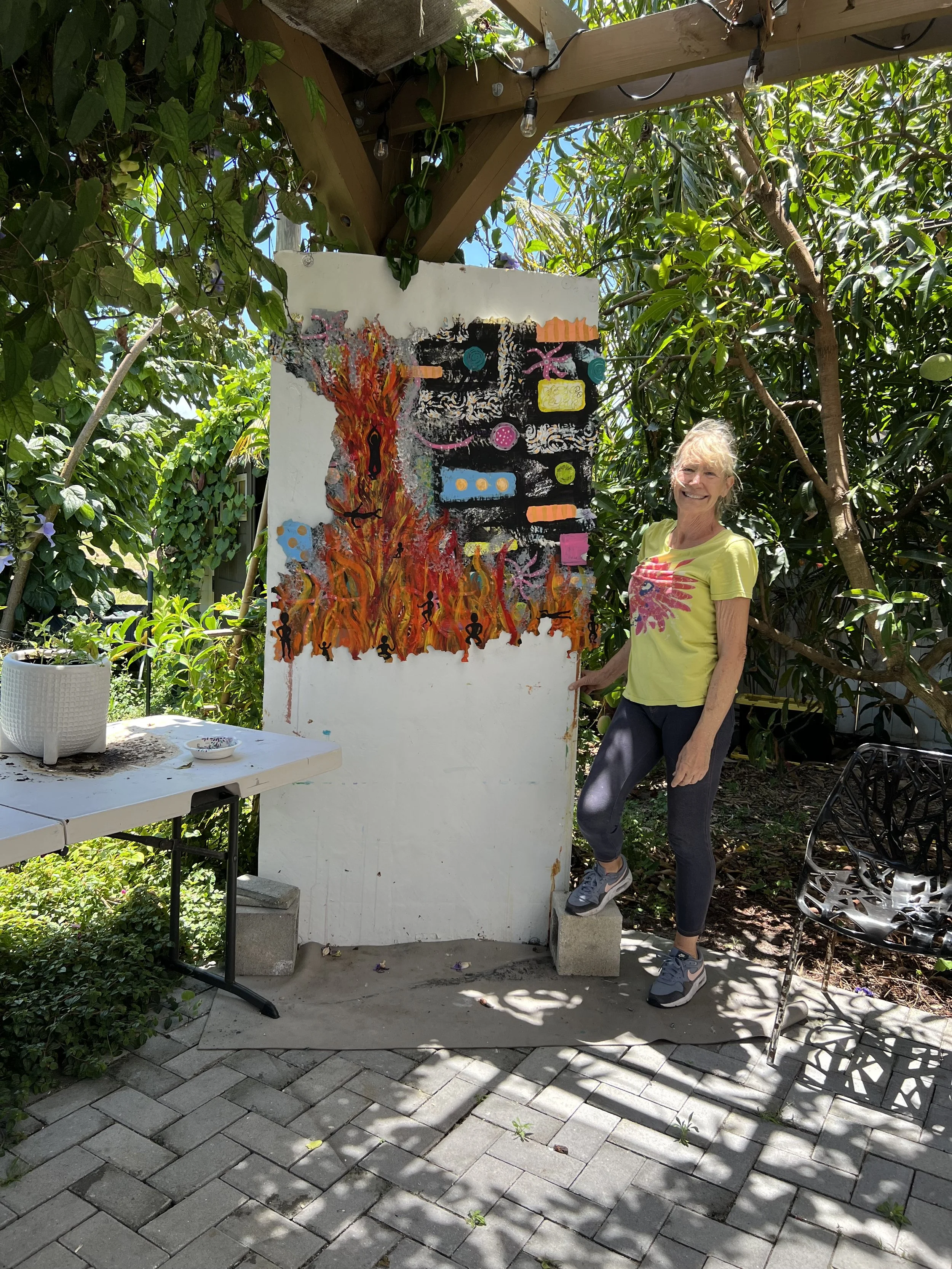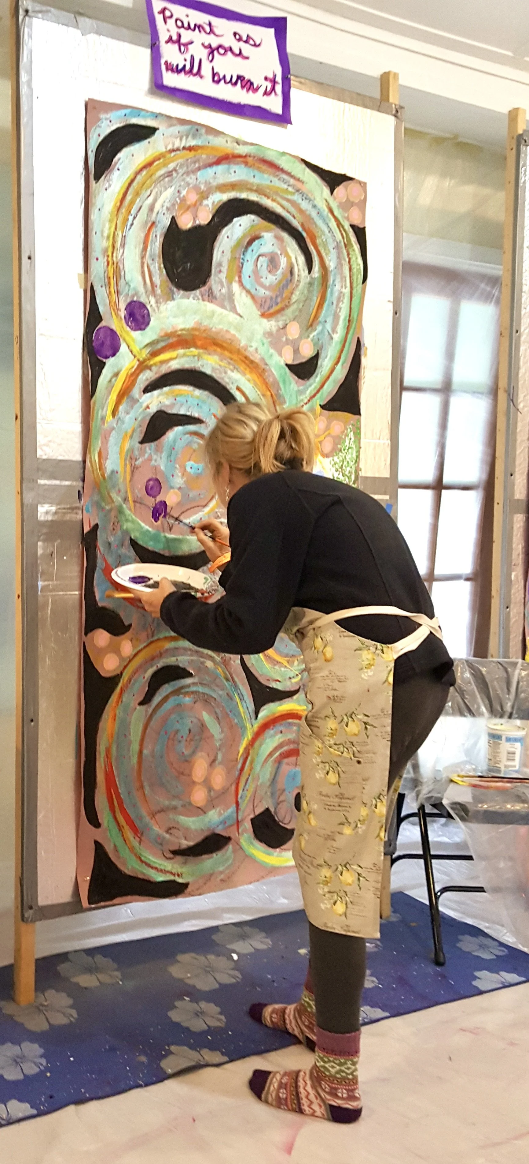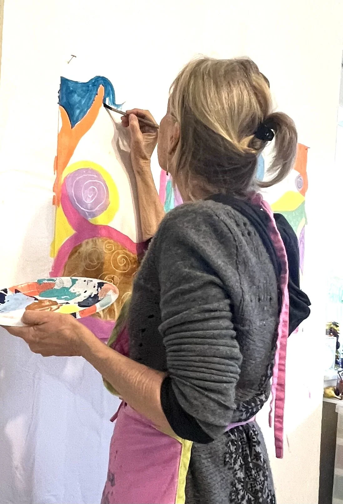 I have hundreds and hundreds of photos and videos of Ginny creating in the studio. I’ve shared just a few here to honor the extraordinary creative, joyful, and brave spirit that she was. Ginny inspired all of us—especially me—with her unwavering positivity, hilarious sense of humor, deep gentleness, playful FUN, and wild, soulful creativity. Through years of living with cancer—through remissions and reactivations—she showed up again and again with courage, curiosity, and heart.