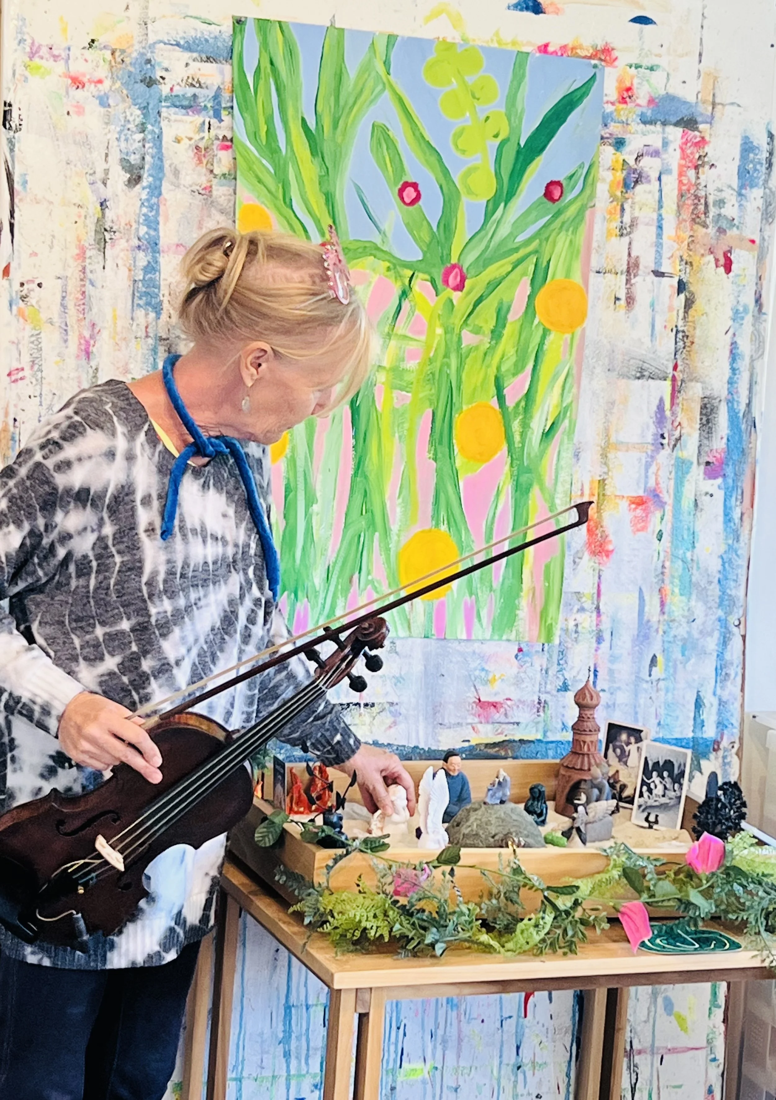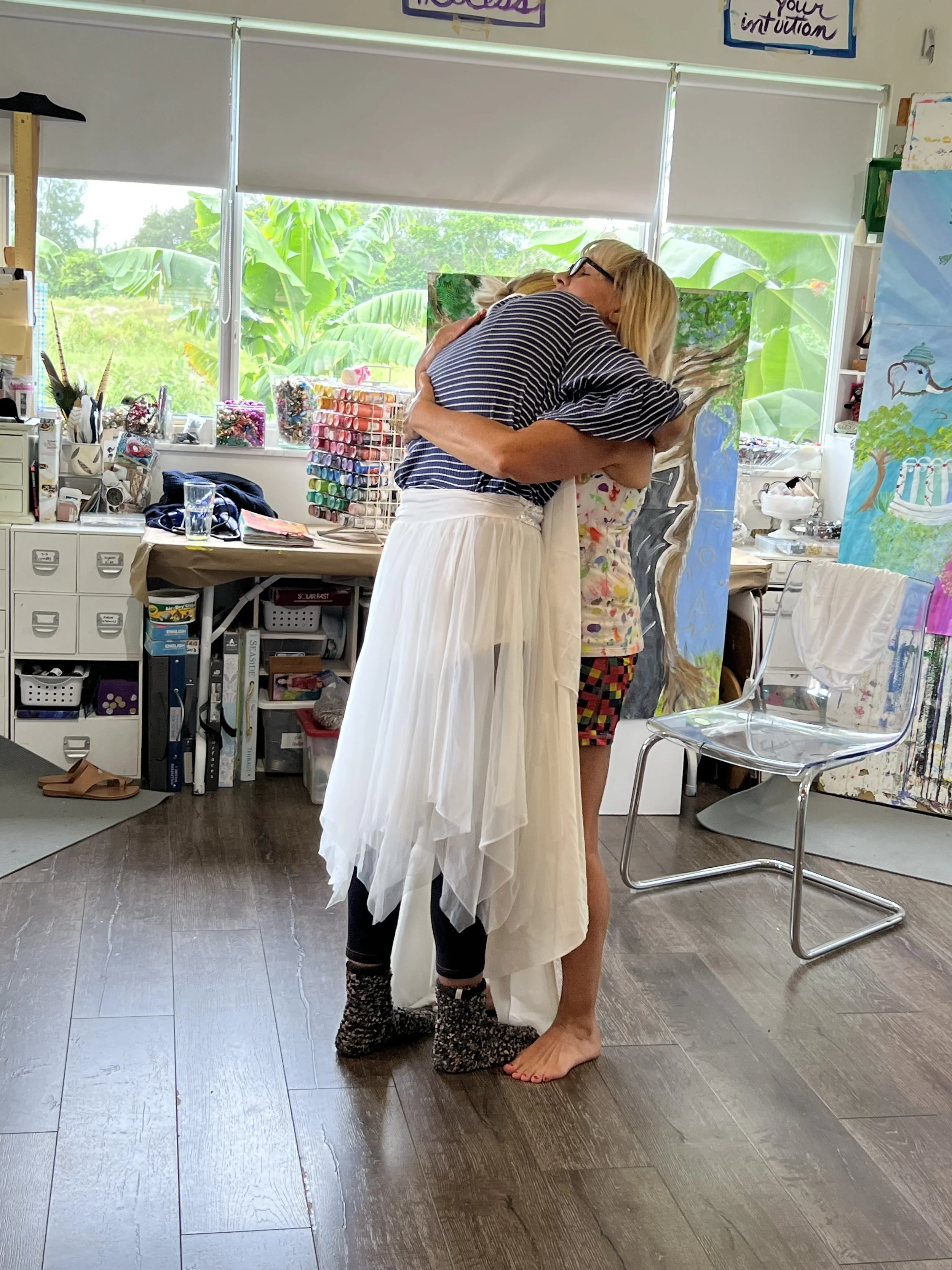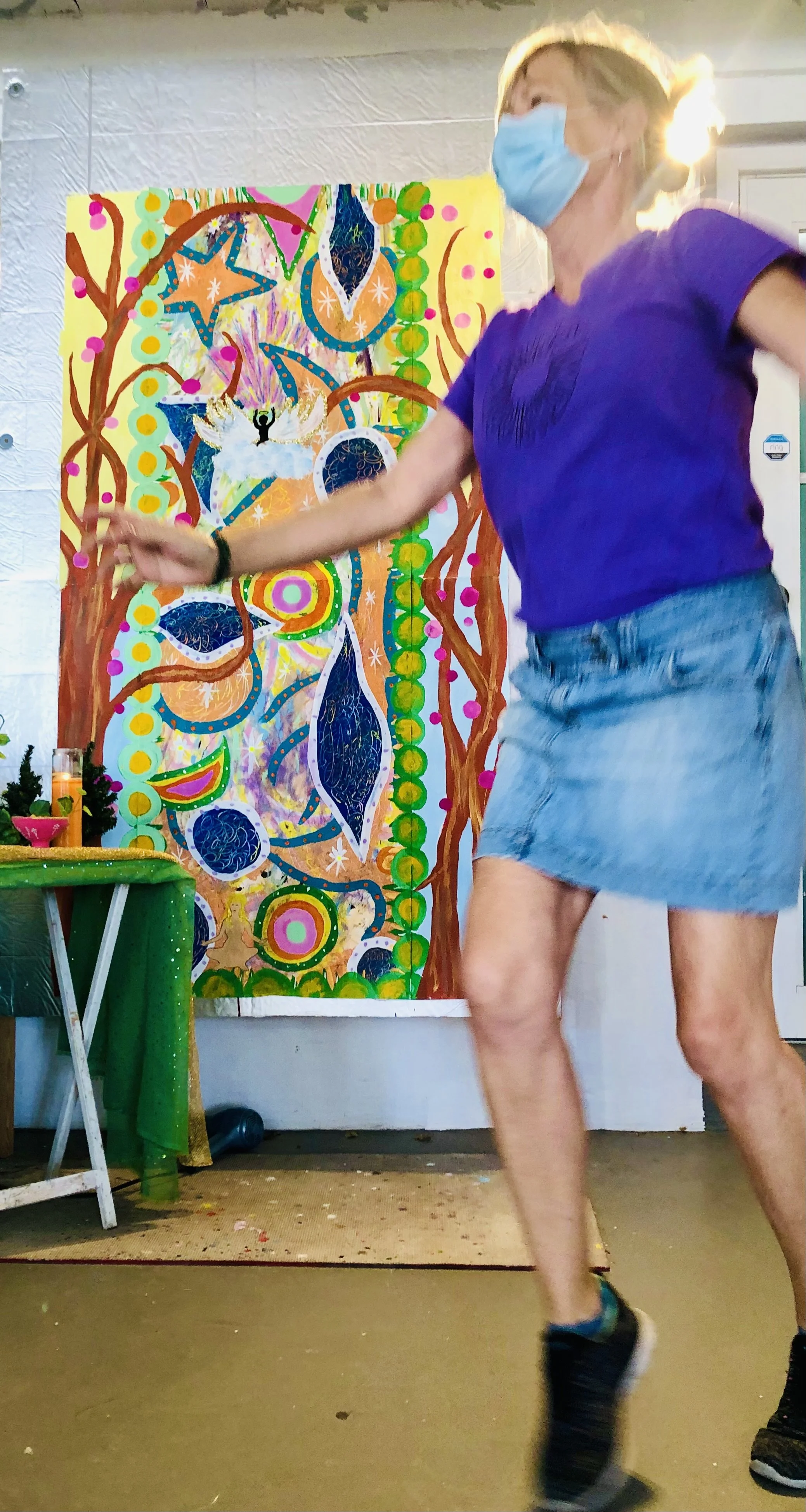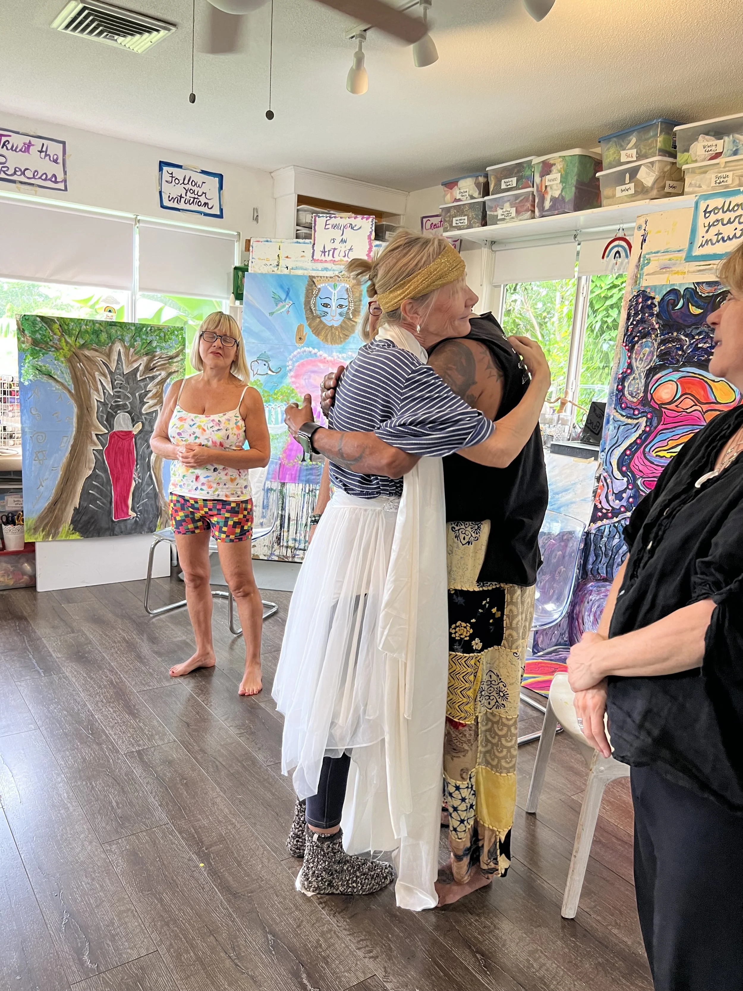 In the painting classes at Juicy Creatives, at the end of each eight-week series, we embody our paintings—we step into the worlds we’ve been creating. This is where the real magic happens. And I will forever miss Ginny in those moments—singing, dancing, and vibrating with the energy of the worlds she brought into being with colors and brushes.