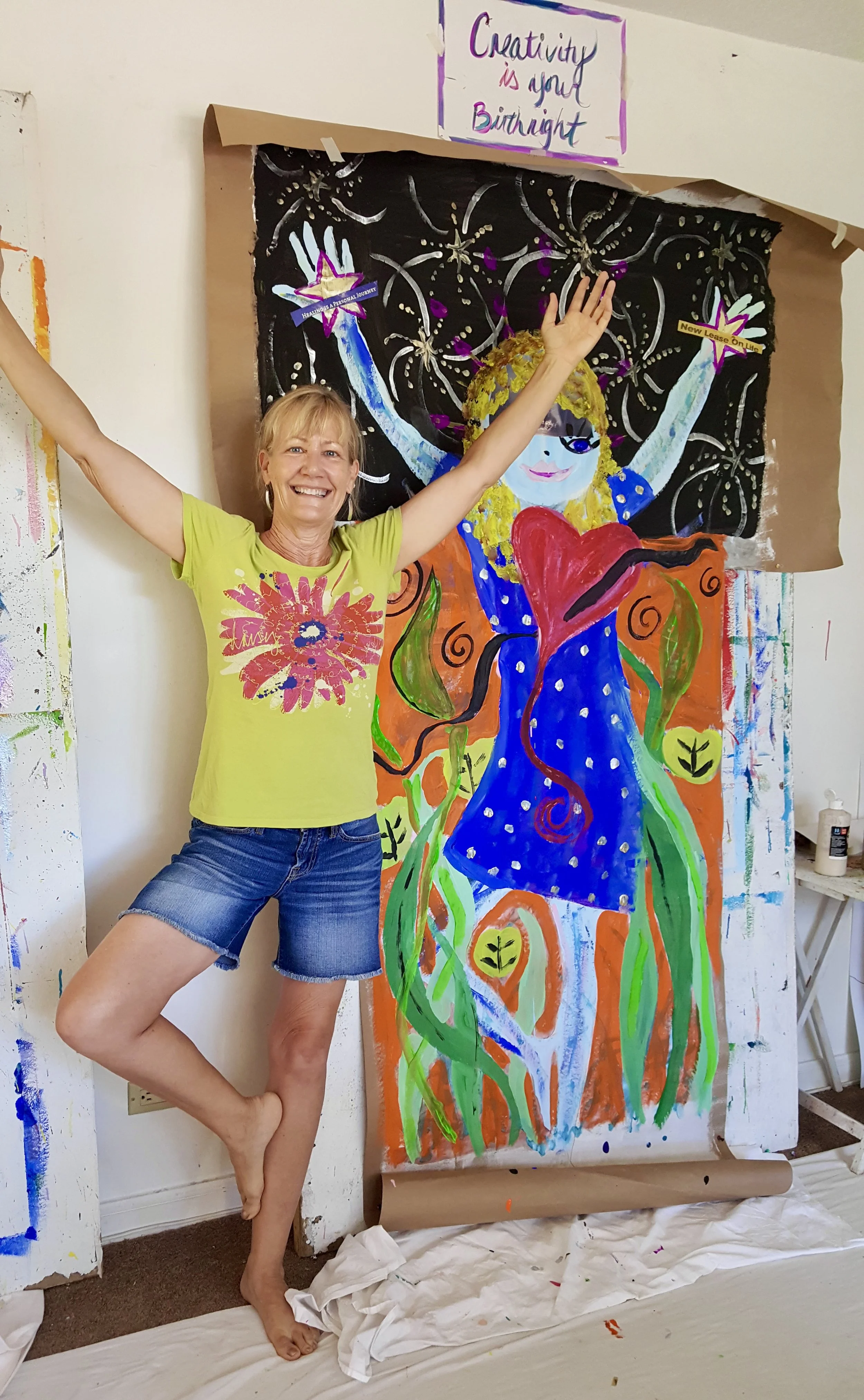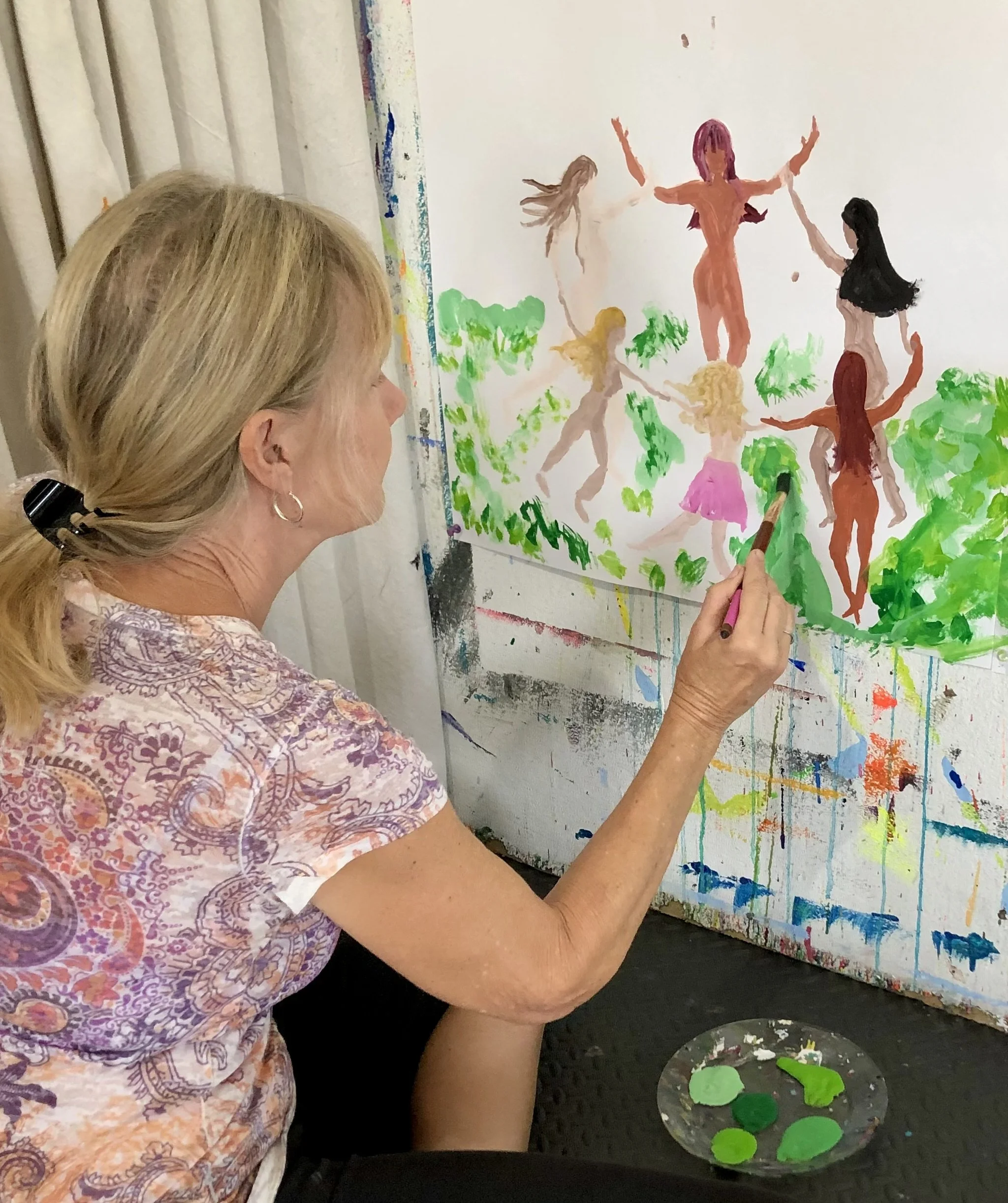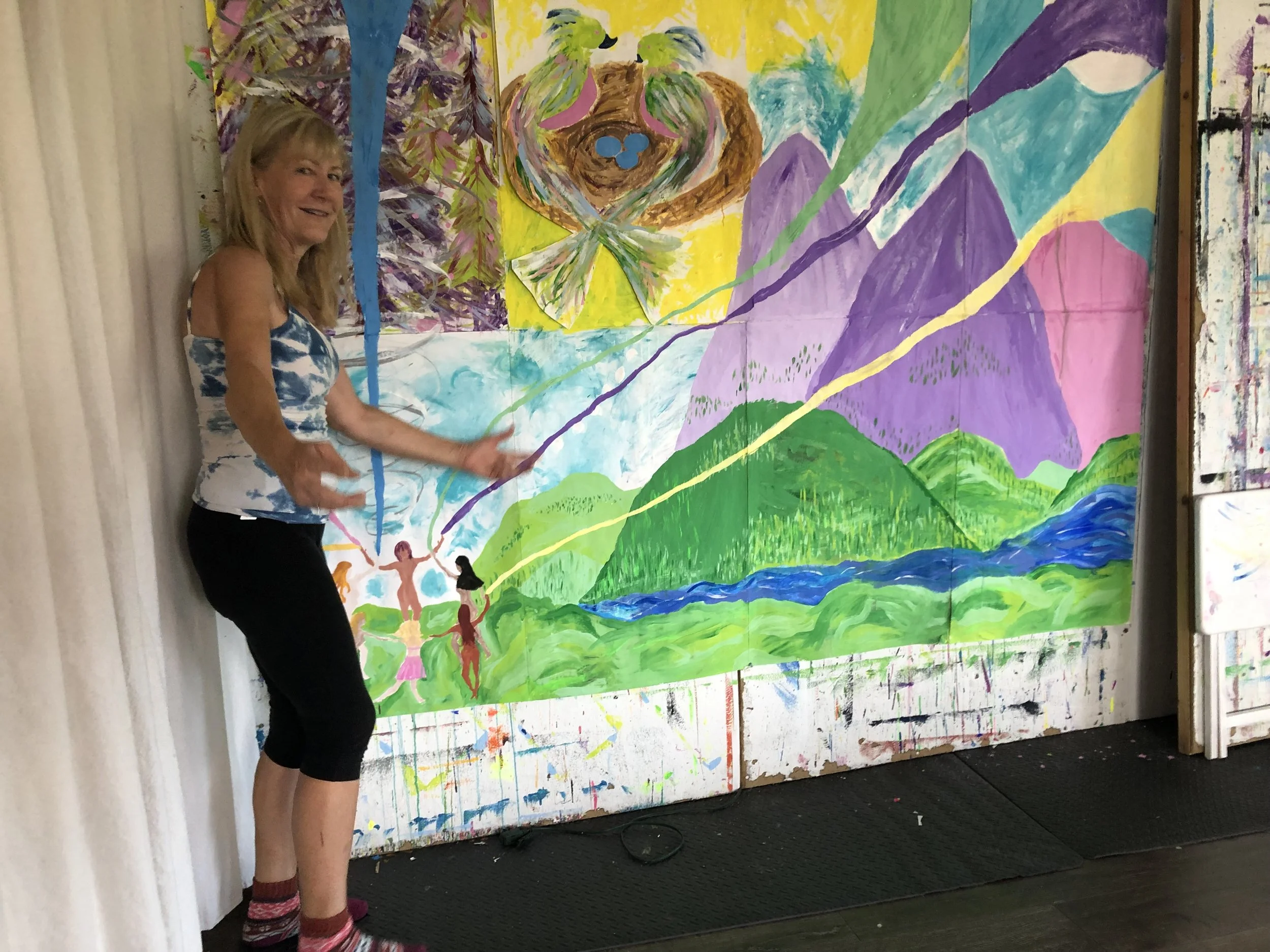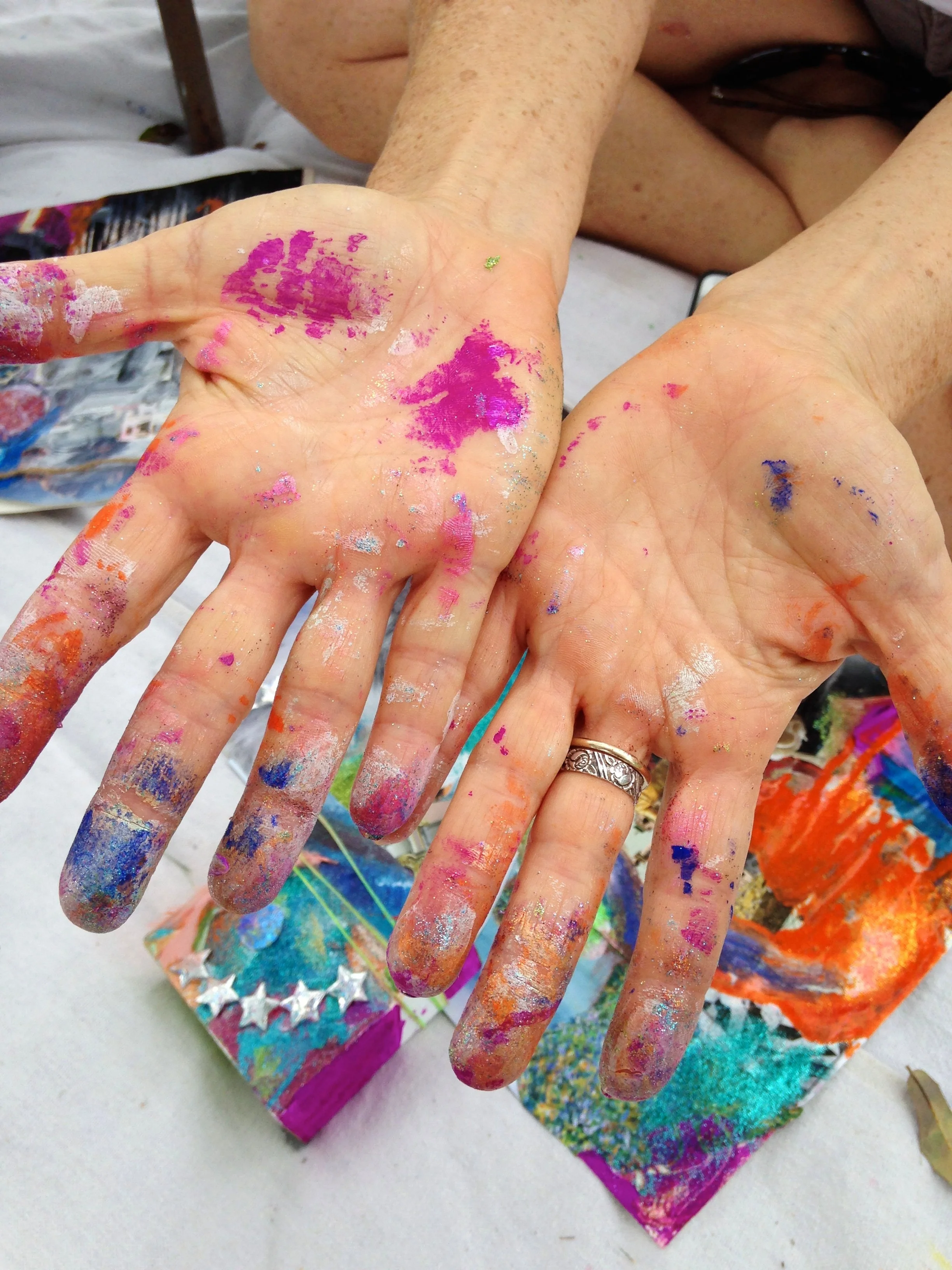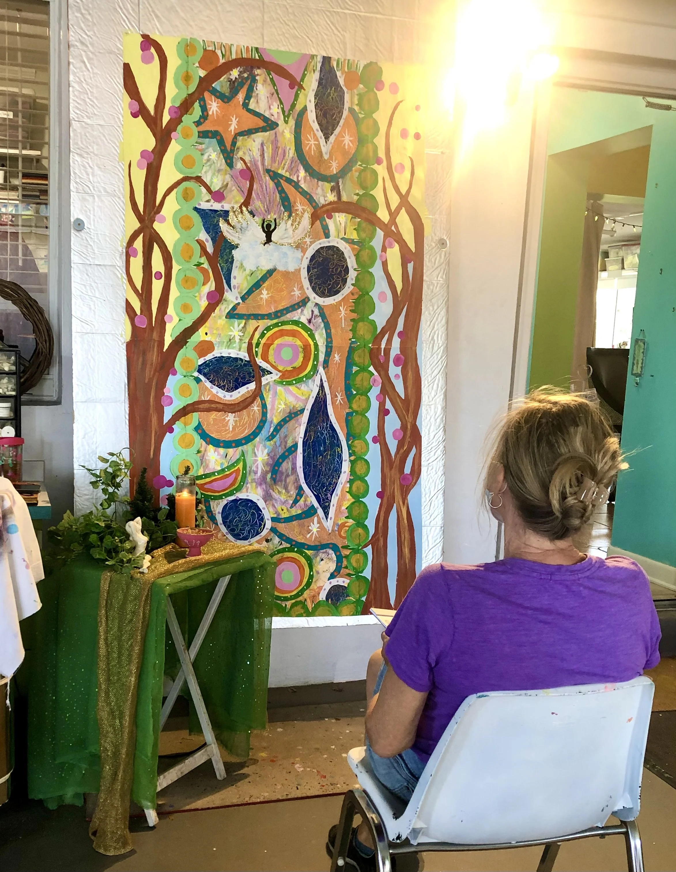 In the painting classes at Juicy Creatives, at the end of each eight-week series, we embody our paintings—we step into the worlds we’ve been creating. This is where the real magic happens. And I will forever miss Ginny in those moments—singing, dancing, and vibrating with the energy of the worlds she brought into being with colors and brushes.