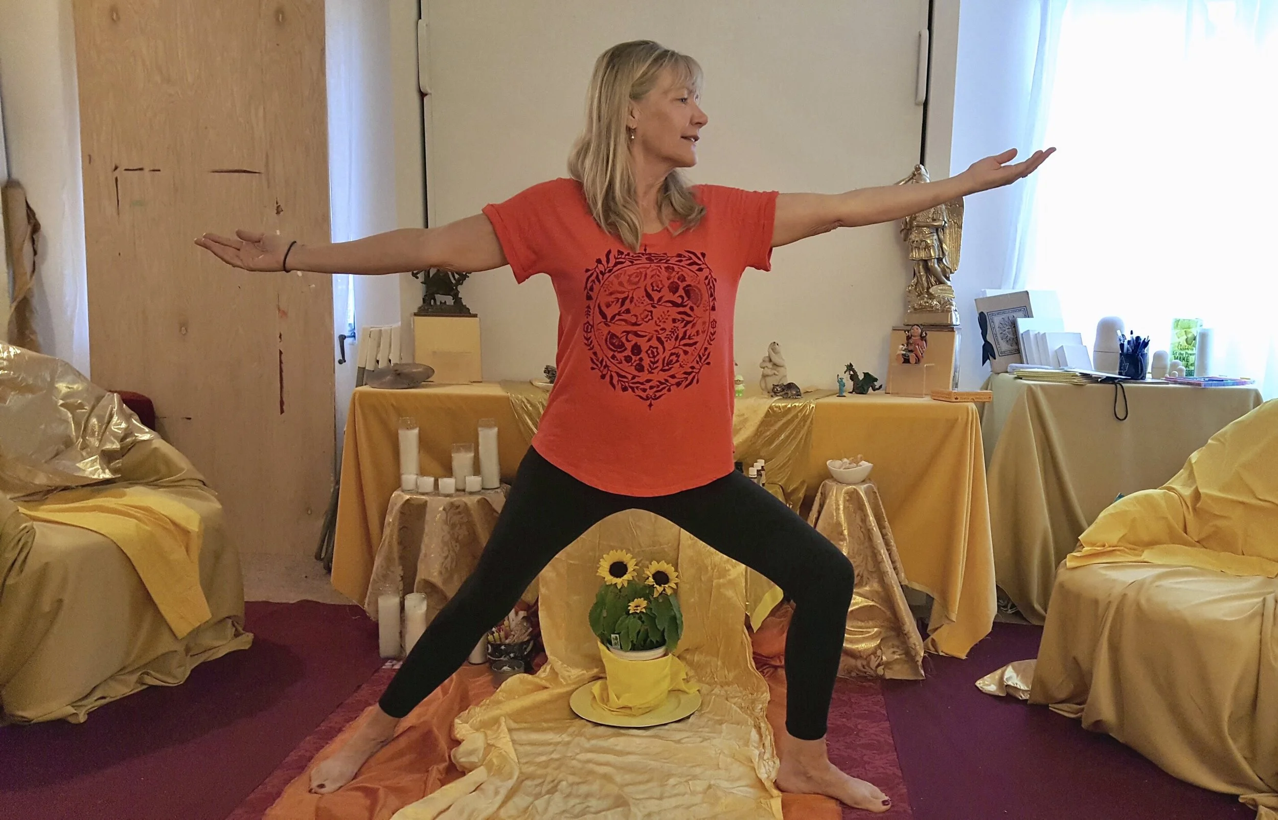 It may be hard to make out all the details in the images of her final paintings, but I invite you to look closely. Look for the angels hidden in the landscapes. Look for the meditating figures above and below. Look for the hidden doorways—revealing Ginny as the Magician of the Tarot, and beyond that, the World card. As if she were saying, “It’s a short journey really—from Fool, to Magician, to revelation. Enjoy the journey.”