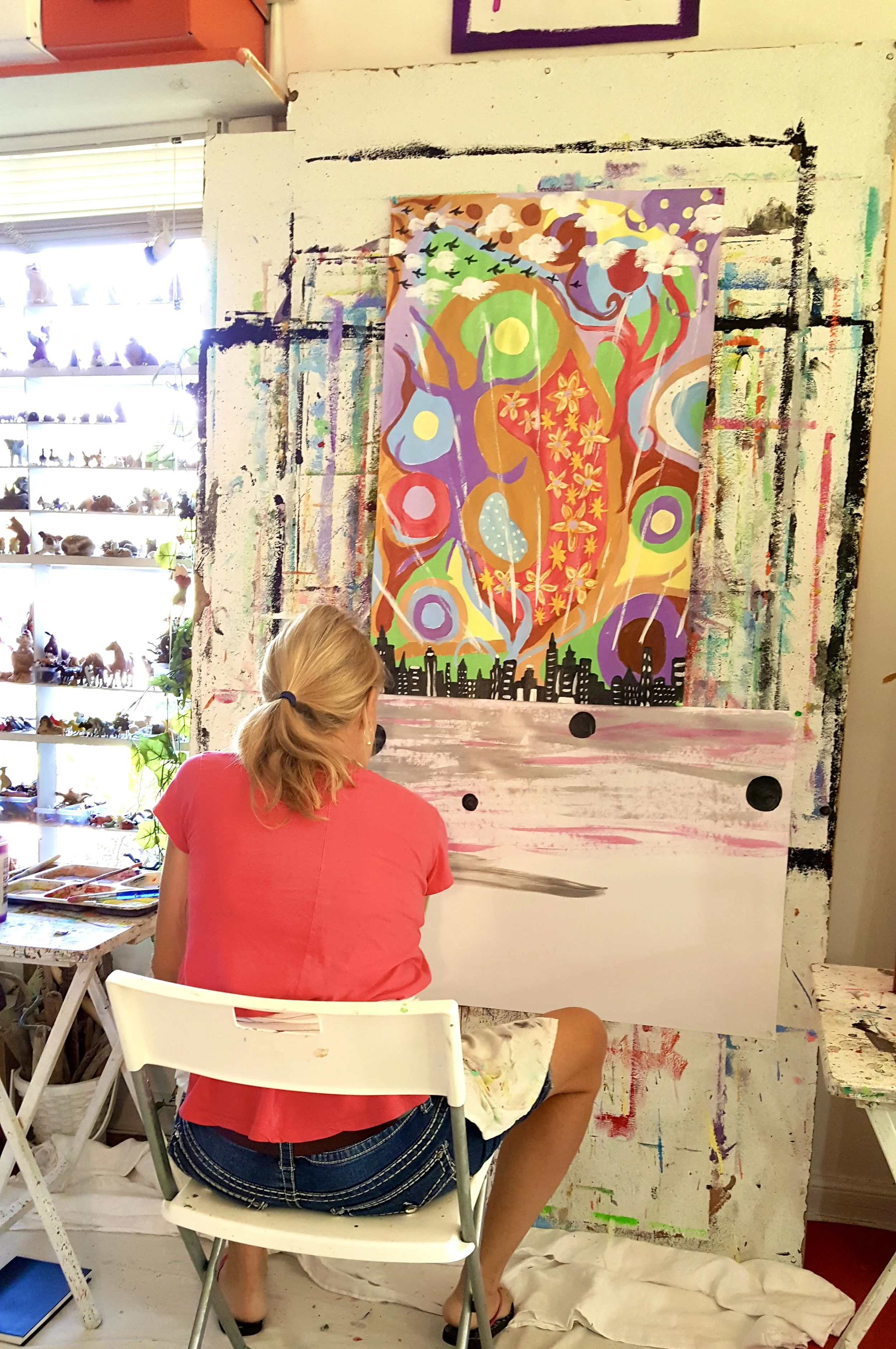 Ginny continued to create—bravely, playfully, devotionally—well into her final year on Earth. Even as her body weakened and her hands trembled as she held the brush, her imagination stayed alive, curious, and luminous. She showed us that creativity does not belong only to the young, the well, or the unbroken. It belongs to anyone willing to show up and listen.