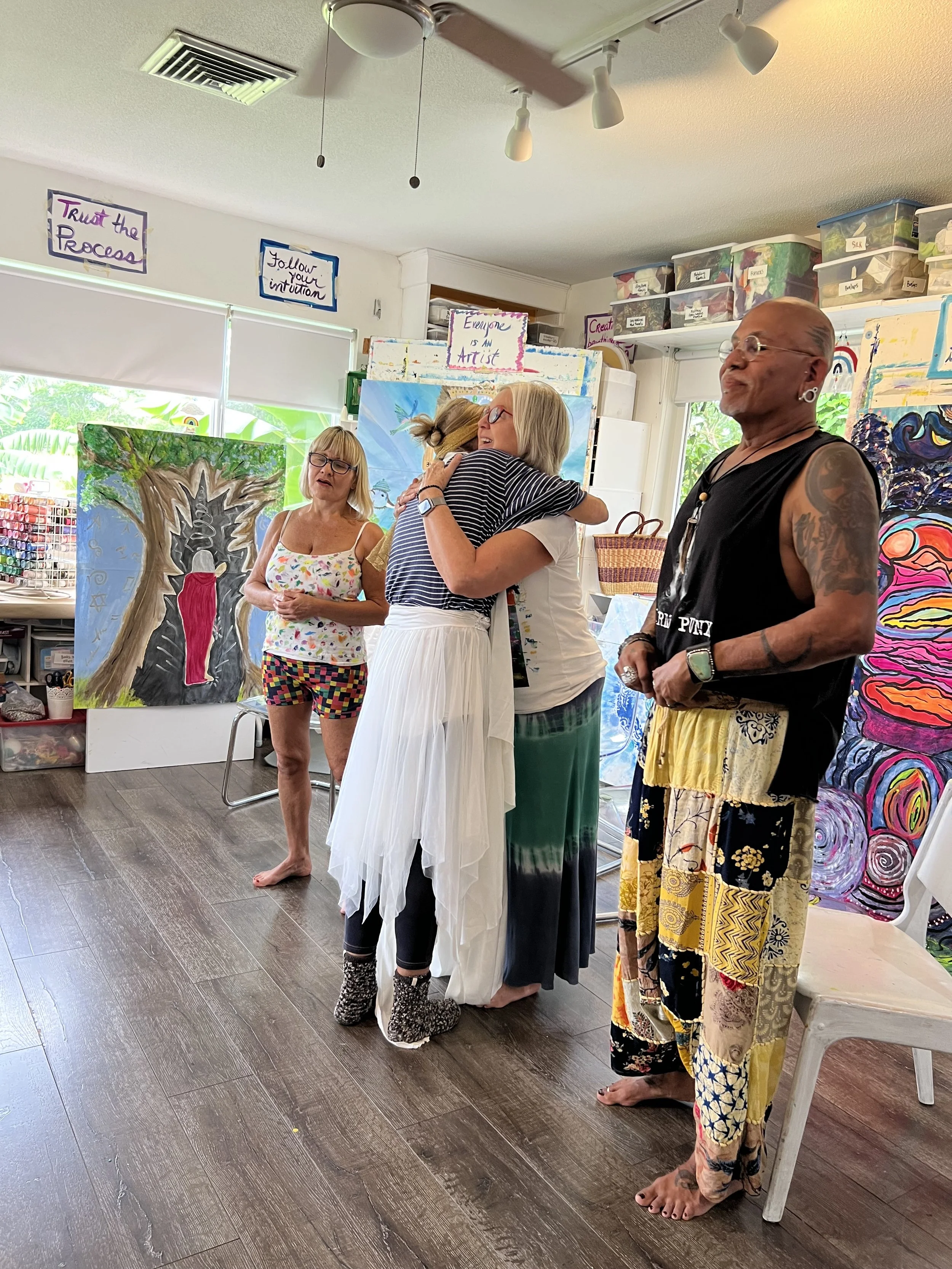 And just like that, ✨Secret Soul Lab✨ was born—an underground expressive arts group, meeting quietly in my home each week, like a book club but with paint, intuition, and soul. That moment—her insistence, her belief, her hunger for creativity—helped keep the flame alive when I was close to letting it go out.