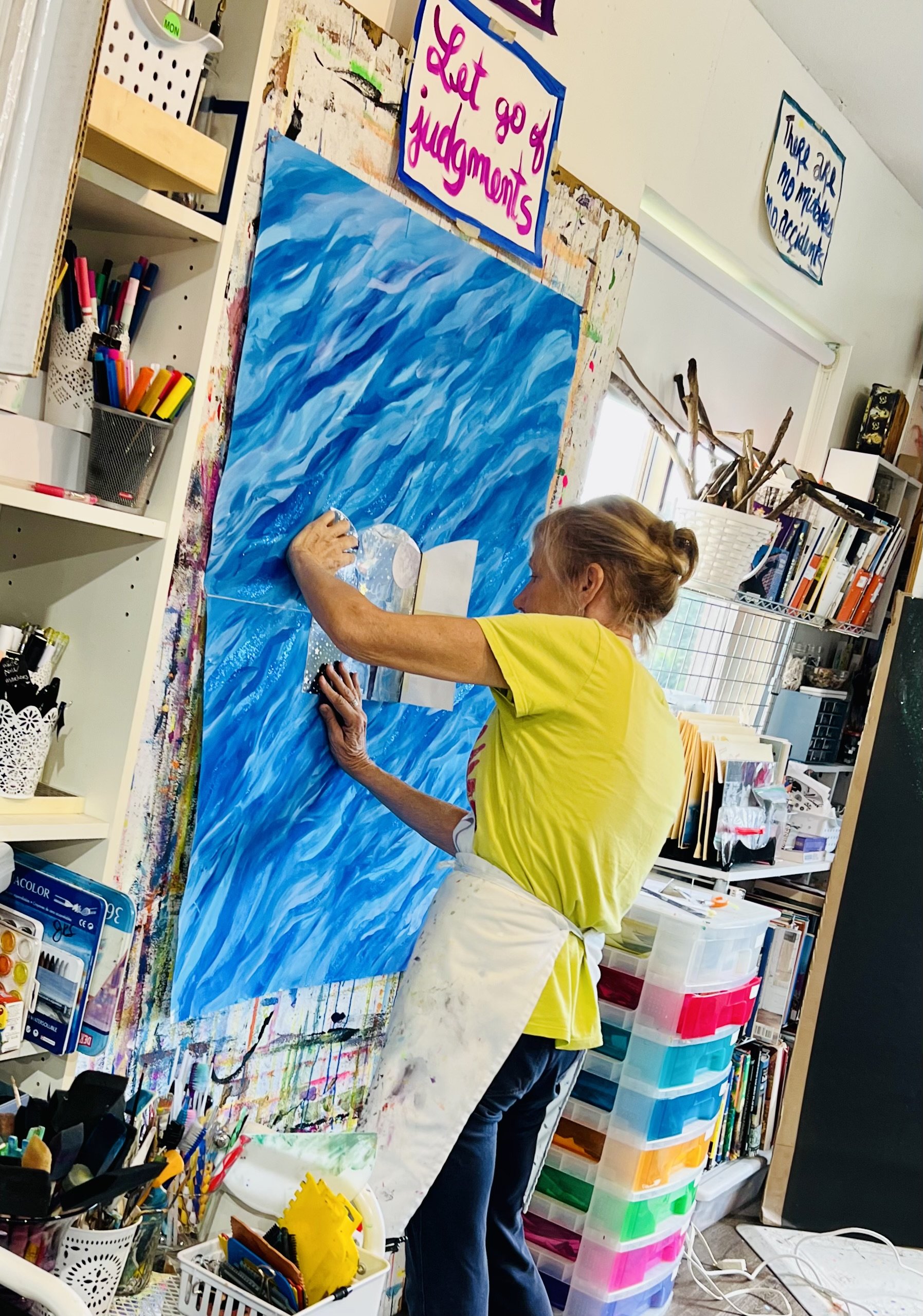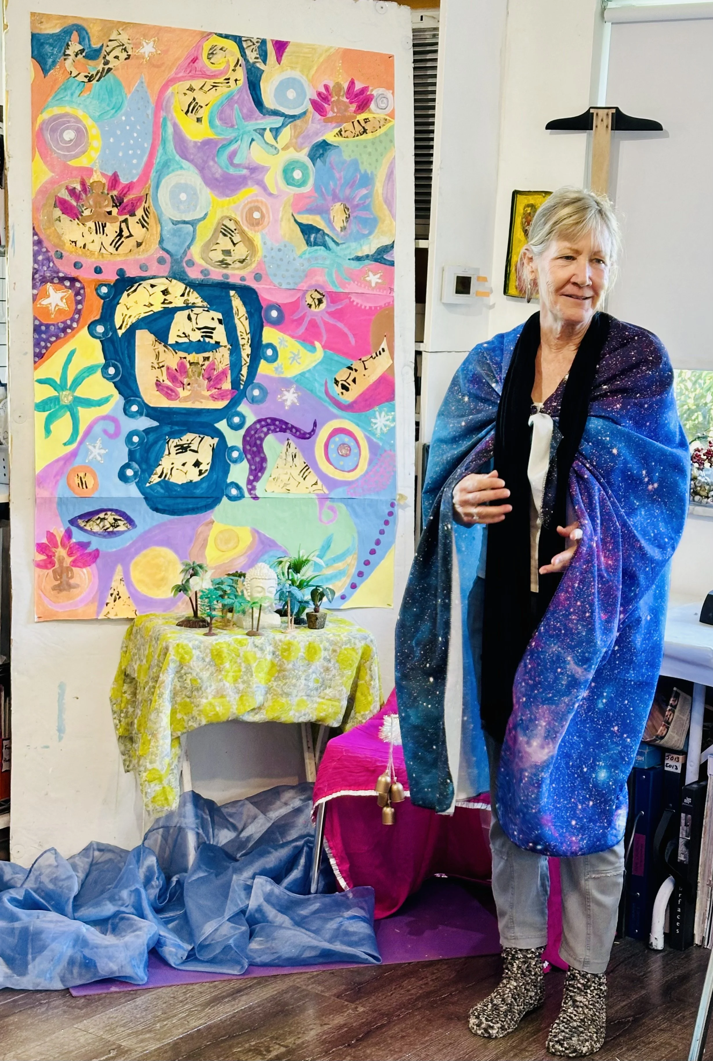 Looking back over her work—especially in the final years of her painting journey—I see a deep exploration of belonging: belonging here on Earth, and belonging in the cosmos. And when you painted beside Ginny, she brought you there with her.