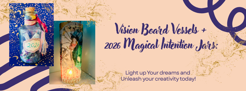 12:30-5pm Open Studio for Collage ~ traditional vision boards or vision vessels and 2026 magical intention spells.